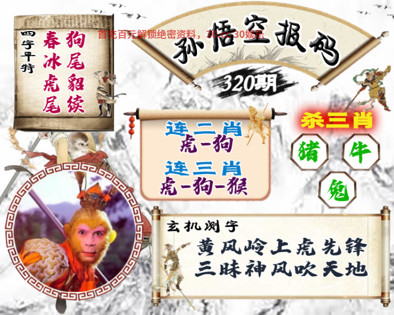 | 320期:复式连肖 复式连肖:[猪龙羊]-[狗猴牛]-[蛇鼠虎] |